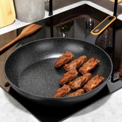 Patelnia z granitową powłoką o średnicy 32 cm. Idealna do duszenia oraz smażenia z minimalną ilością tłuszczu. Nadaje się na wszystkie rodzaje kuchni wraz indukcją, a także do zmywarki.