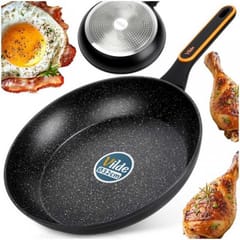 - Nieprzywierająca powłoka granitowa - Patelnia wykonana z aluminium z nieprzywierającą powłoką granitową w czarnym kolorze. Powierzchnia nieprzywierająca umożliwia przygotowywanie zdrowych i smacznych posiłków z minimalną ilością tłuszczu. Wyposażona w uchwyt wykonany z najwyższej jakości, wytrzymałego tworzywa w czarnym i pomarańczowym kolorze.