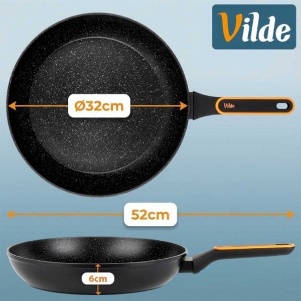 Nieprzywierająca patelnia o wyjątkowym, ponadczasowym wyglądzie. Patelnia posiada modny design, dzięki czemu efektownie prezentuje się w kuchni. Niezastąpiona w każdej kuchni, ułatwia gotowanie, smażenie i duszenie potraw. Wykonana z najwyższej jakości materiałów, odpowiednio użytkowana posłuży długie lata. Oryginalny produkt marki Vilde z linii Terruna. Wyprodukowano zgodnie z europejskimi standardami.