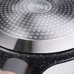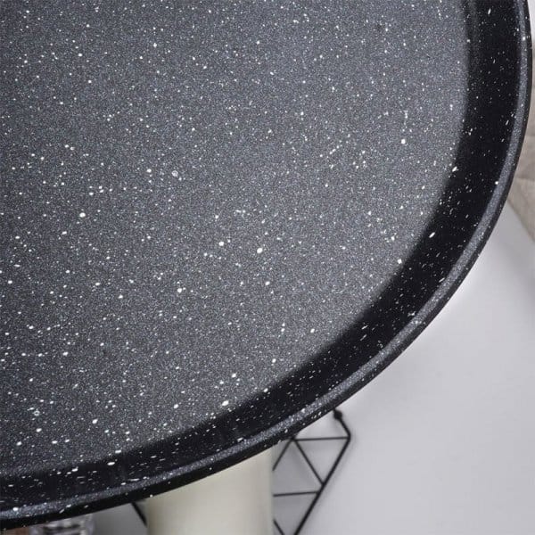 - NIEPRZYWIERAJĄCA - Patelnia wykonana z aluminium z nieprzywierającą powłoką granitową w czarnym kolorze. Powierzchnia nieprzywierająca umożliwia przygotowywanie zdrowych i smacznych posiłków z minimalną ilością tłuszczu. Wyposażona w uchwyt wykonany z najwyższej jakości, wytrzymałego tworzywa imitującego drewno.