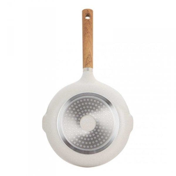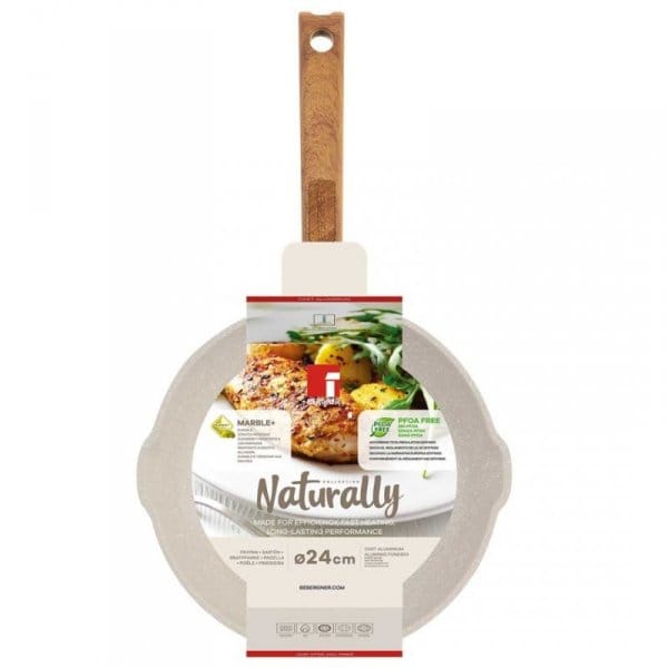 Naczynia z serii NATURALLY firmy BERGNER wykonane są z wysokiej klasy odlewanego aluminium pokrytego wewnątrz potrójną powłoką marmurkową (Marble+) o bardzo wysokim współczynniku twardości. Powłoka zewnętrzna w kolorze naturalnym piaskowym Te atrakcyjne i modne naczynia wyposażone są standardowo w uchwyty typu SOFT TOUCH (silikon handle) imitujące drewno. Przystosowane do wszystkich rodzajów kuchenek: gazowa, elektryczna, ceramiczna, halogenowa, indukcyjna.