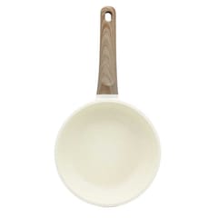 Patelnia marmurkowa Brunbeste to funkcjonalne i stylowe naczynie, które doskonale sprawdzi się w codziennym gotowaniu. Dzięki głębszej konstrukcji idealnie nadaje się nie tylko do smażenia, ale również do duszenia czy przygotowywania dań jednogarnkowych. Elegancki, beżowy kolor oraz rączka imitująca drewno sprawia, że patelnia pięknie prezentuje się w każdej kuchni.