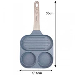 Podział patelni na 3 osobne sekcje umożliwia równoczesne smażenie różnych składników, takich jak jajka, bekon, warzywa czy kiełbaski, bez mieszania się smaków i zapachów. Każda sekcja ma odpowiednią wielkość, dostosowaną do różnych rodzajów jedzenia – mniejsze miejsca sprawdzą się idealnie na jajka, podczas gdy większe pozwolą na podsmażenie warzyw czy mięs. Większa sekcja ma chcarakterystyczne dla patelni grillowych żebrowania co jest szczególnie przydatne przy smażeniu kiełbasek czy plastrów warzyw jak np. cukinia.