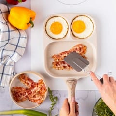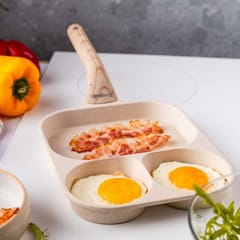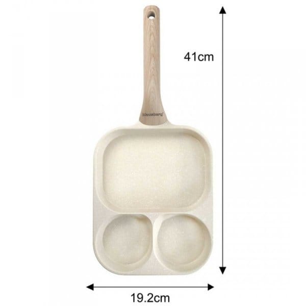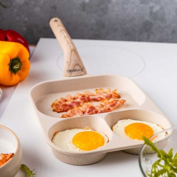 Podział patelni na 3 osobne sekcje umożliwia równoczesne smażenie różnych składników, takich jak jajka, bekon, warzywa czy kiełbaski, bez mieszania się smaków i zapachów. Każda sekcja ma odpowiednią wielkość, dostosowaną do różnych rodzajów jedzenia – mniejsze miejsca sprawdzą się idealnie na jajka, podczas gdy większe pozwolą na podsmażenie warzyw czy mięs.