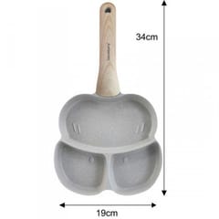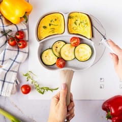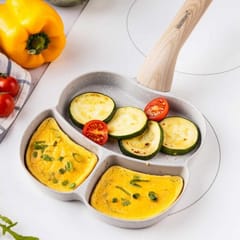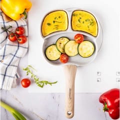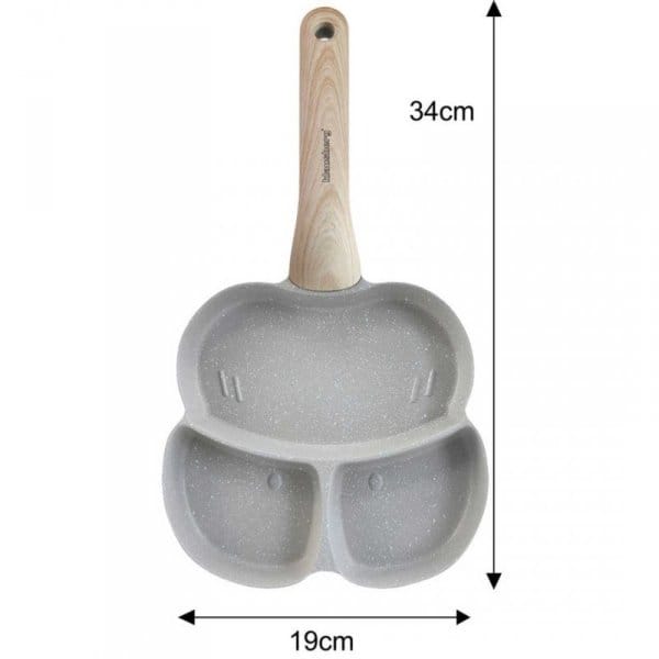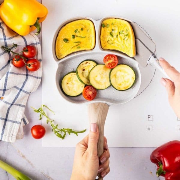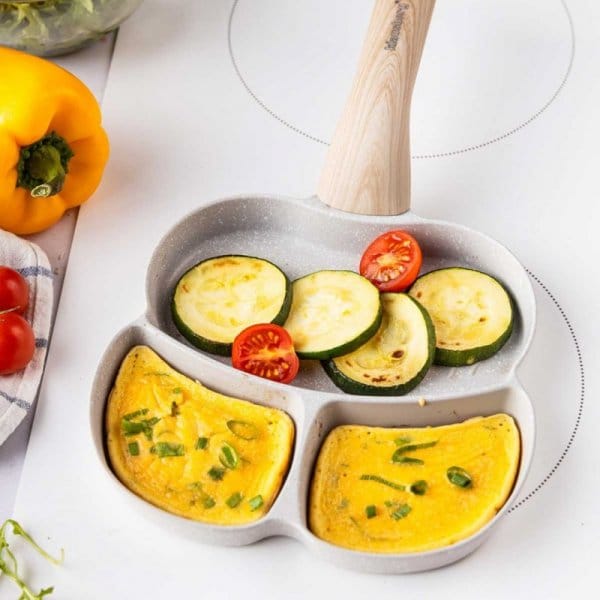 Podział patelni na 3 osobne sekcje umożliwia równoczesne smażenie różnych składników, takich jak jajka, placki, bekon, warzywa czy kiełbaski, bez mieszania się smaków i zapachów. Każda sekcja ma odpowiednią wielkość, dostosowaną do różnych rodzajów jedzenia – mniejsze miejsca sprawdzą się idealnie na jajka, podczas gdy większe pozwolą na podsmażenie warzyw czy mięs.