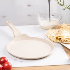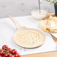 Trwała marmurkowa powłoka nieprzywierająca typu marble zapewnia łatwe czyszczenie, a niski profil i szeroki rant umożliwiają wygodne przewracanie naleśników jednym ruchem. Patelnia współpracuje ze wszystkimi rodzajami kuchenek, w tym z indukcją, a ergonomiczny uchwyt soft-touch pozostaje chłodny w dotyku i zapewnia komfortową pracę.