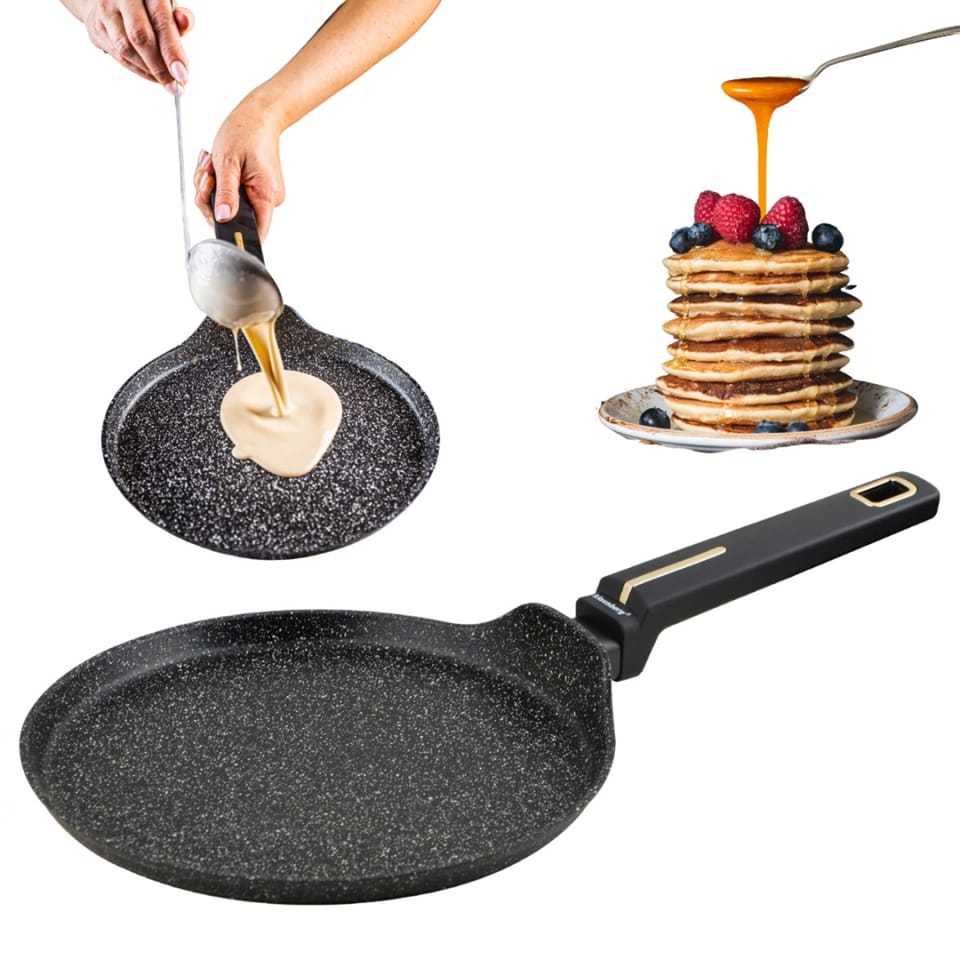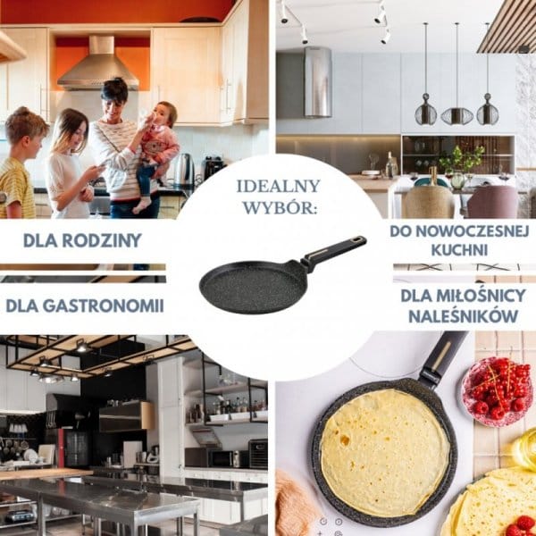 Sprawdzi się nie tylko do naleśników, ale również do omletów, placków z jabłkami, tortilli, quesadilli czy wrapów śniadaniowych. Jej wszechstronność i elegancki design sprawiają, że to idealne narzędzie do codziennego gotowania, zarówno w domu, jak i w małej gastronomii.