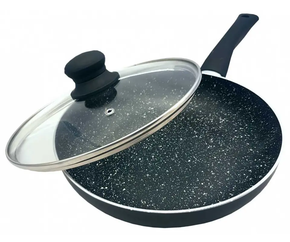 Wysoka temperatura to dla patelni nie problem! Materiał z którego wyprodukowano naczynie równomiernie rozprowadza ciepło do niej dostarczane. Dzięki powłoce nieprzywierającej, nie doświadczą Państwo problemu z przyklejaniem i przypalaniem się produktów. Patelnię można ją myć w zmywarkach.