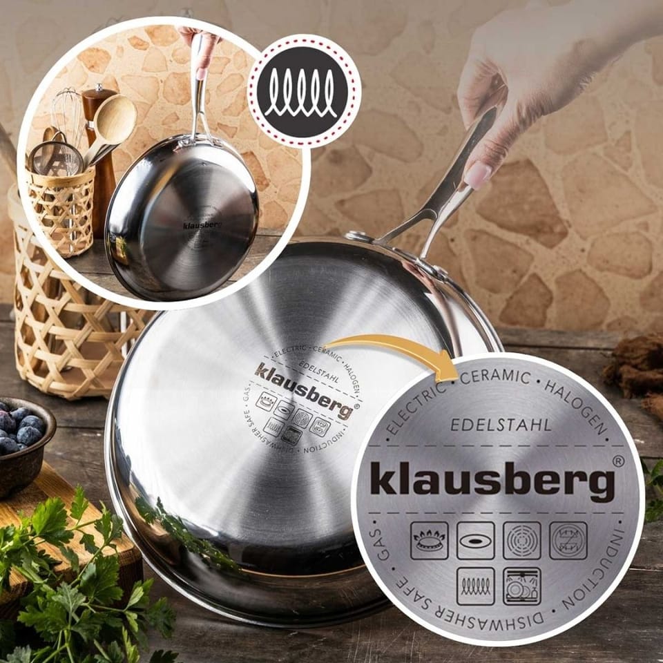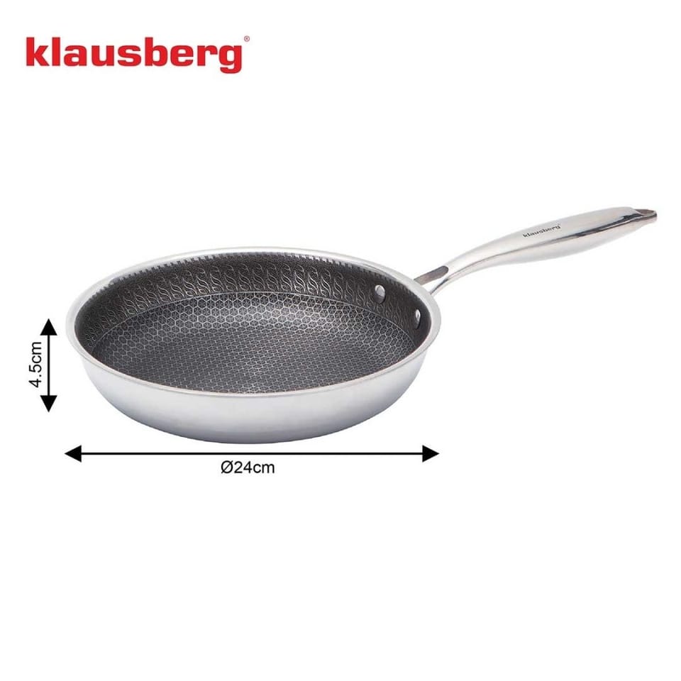 Patelnia Klausberg KB-9022 o średnicy 24 cm to wysokiej jakości naczynie kuchenne stworzone z myślą o codziennym gotowaniu oraz bardziej wymagających zastosowaniach. Dzięki połączeniu nowoczesnej technologii honeycomb oraz solidnej konstrukcji TRIPLY, patelnia zapewnia doskonałe właściwości nieprzywierające, trwałość oraz równomierne nagrzewanie.