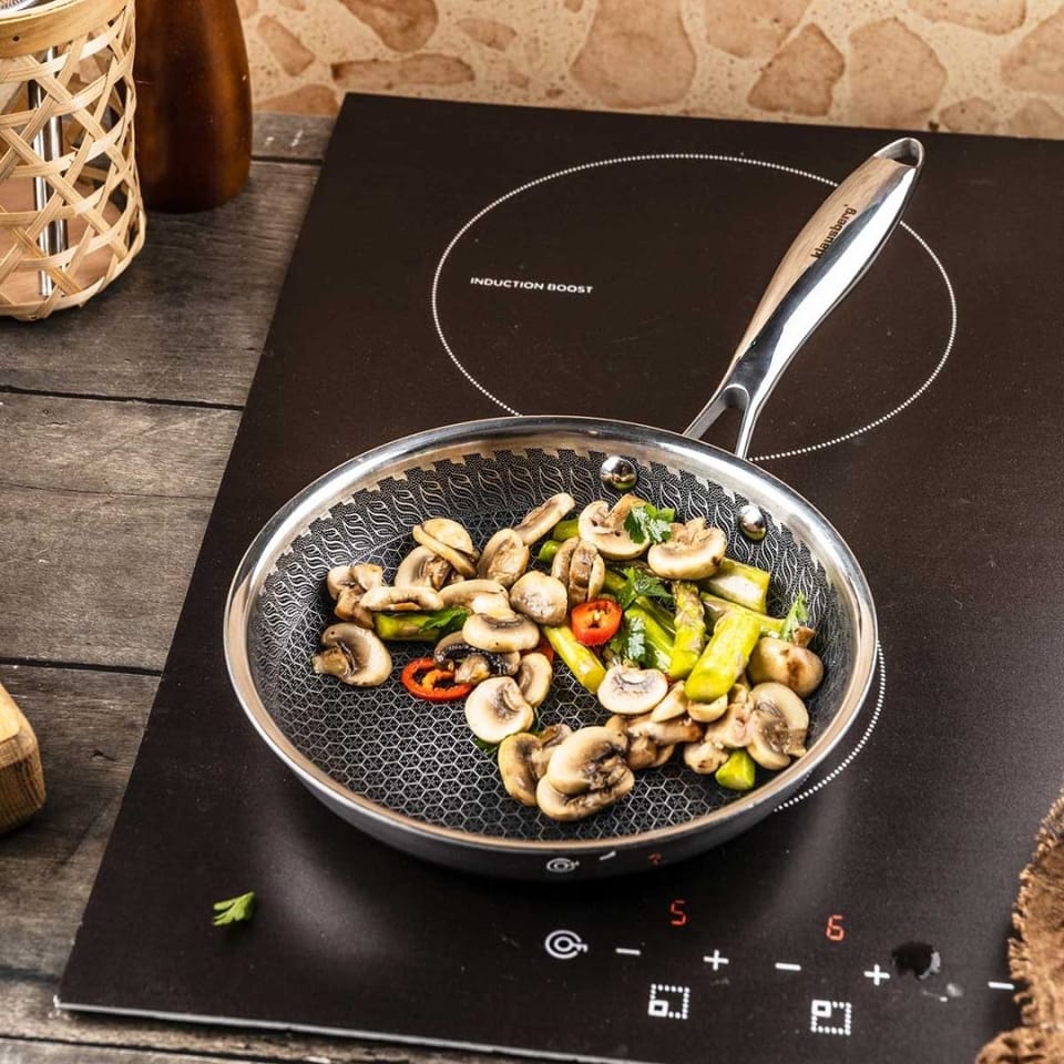 Dzięki tej technologii patelnia nagrzewa się szybko i równomiernie, co pozwala skrócić czas przygotowywania potraw.