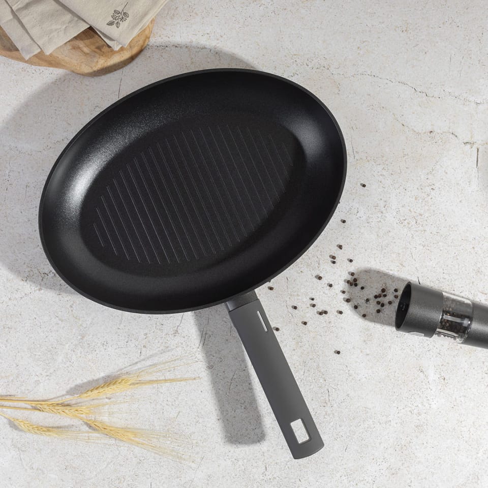 Wytrzymałe naczynia z odlewanego aluminium umożliwiają przygotowywanie potraw bez przywierania i z małą ilością tłuszczu. Warstwa tytanowa sprawia, że patelnie są niezwykle odporne na zarysowania. Można w nich przygotować pyszne i zdrowe potrawy, które nie utracą soczystości i walorów odżywczych. Nadają się do wszystkich rodzajów kuchenek: gazowych, elektrycznych, ceramicznych, halogenowych i indukcyjnych.
