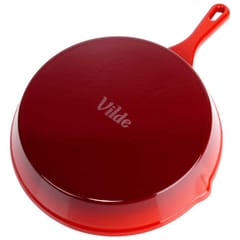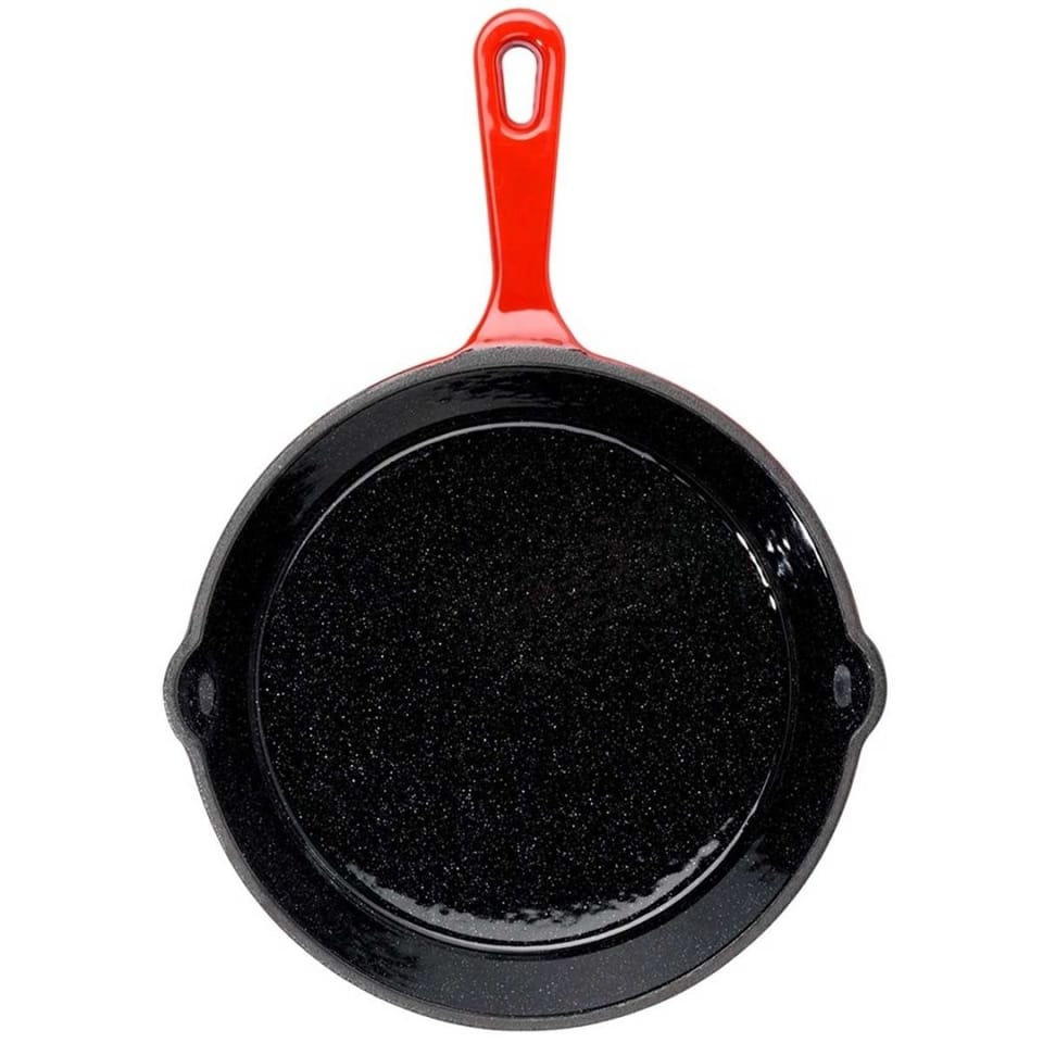 - Wykonana z żeliwa z powłoką emaliowaną - Patelnia wykonana w całości z odlewu żeliwa, pokryta emalią wewnątrz w kolorze czarnym, a na zewnątrz w kolorze czerwonym. Naczynia wykonane z żeliwa idealnie rozprowadzają ciepło oraz długo utrzymują wysoką temperaturę. Naczynie jest solidne, masywne, długowieczne. Odpowiednio konserwowana - natłuszczana, posłuży przez wiele lat.