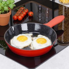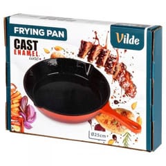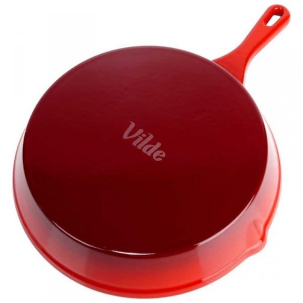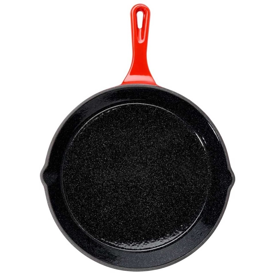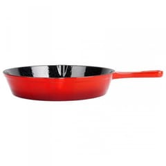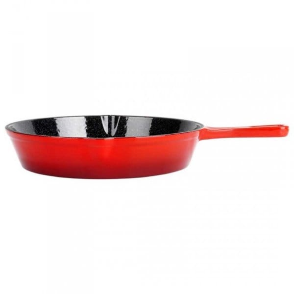 - Wykonana z żeliwa z powłoką emaliowaną - Patelnia wykonana w całości z odlewu żeliwa, pokryta emalią wewnątrz w kolorze czarnym, a na zewnątrz w kolorze czerwonym. Naczynia wykonane z żeliwa idealnie rozprowadzają ciepło oraz długo utrzymują wysoką temperaturę. Naczynie jest solidne, masywne, długowieczne. Powłoka emaliowana jest nieprzywierająca.