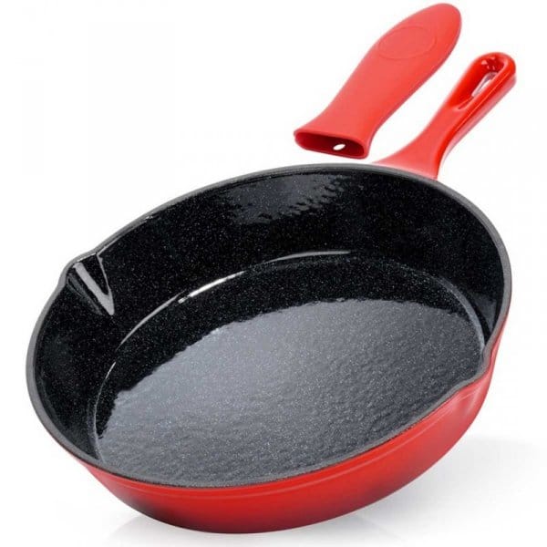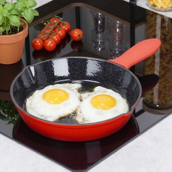 - Nakładka silikonowa na uchwyt w zestawie - Wyposażona w wygodny uchwyt ułatwiający przenoszenie oraz dwie wylewki, które ułatwią nakładanie przygotowanych potraw. Dodatkowo w zestawie nakładka silikonowa w kolorze czerwonym do założenia na rączkę patelni, która zapewni bezpieczne przenoszenie bez obaw o poparzenie. Nakładkę wystarczy nałożyć na rączkę patelni. Rączka posiada otwór, który pozwoli nam na zawieszenie patelni np. na relingu kuchennym.