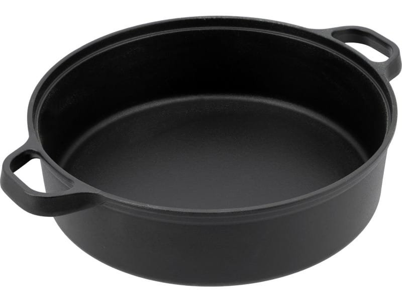 Żeliwna patelnia grillowa z wysokim rantem została zaprojektowana z myślą o grillach gazowych – idealna do smażenia składników, podgrzewania gotowych potraw czy przygotowywania sosów.