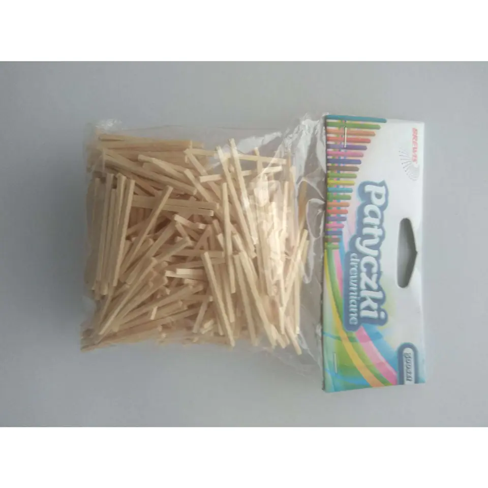 Patyczki zapałki do zastosowania na zajęciach plastycznych. W naturalnym kolorzew drewna, długość 42 mm, opakowanie 500 sztuk.