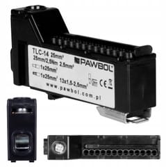 - Wejście: 1x 2,5-25 mm²; wyjście 13x 1,5-2,5 mm²