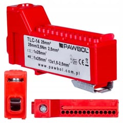 - Wejście: 1x 2,5-25 mm²; wyjście 13x 1,5-2,5 mm²