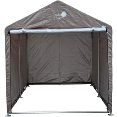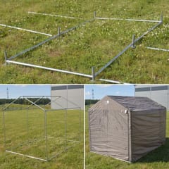 Wyposażony w stelaż ze stali galwanizowanej jest odporny na korozję, uszkodzenia mechaniczne i warunki atmosferyczne. Dzięki temu konstrukcja jest stabilna i trwała, nawet przy intensywnym użytkowaniu oraz ekspozycji na deszcz, wilgoć czy promieniowanie UV. Stal galwanizowana sprawia, że pawilon jest bardziej wytrzymały niż standardowe modele, co gwarantuje długą żywotność i bezpieczeństwo przechowywanych przedmiotów.