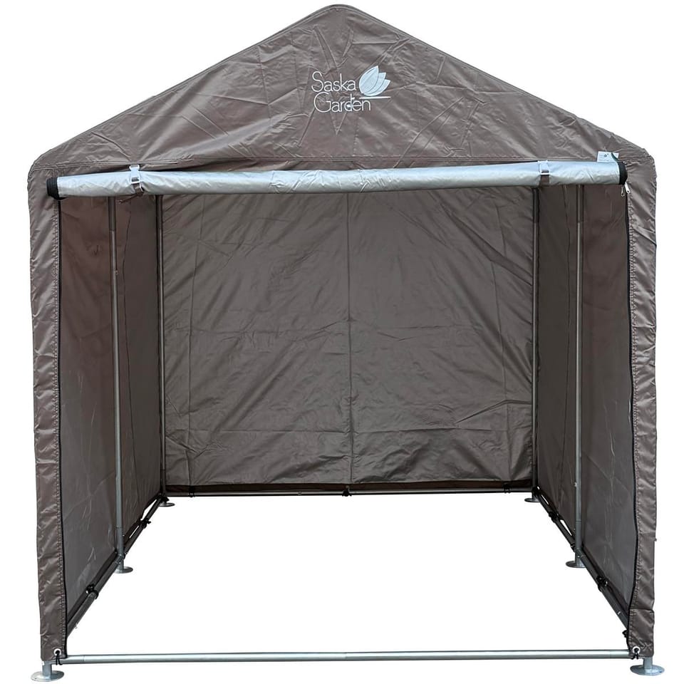Twój sprzęt zasługuje na najlepszą ochronę – kup PAWILON GARAŻ OGRODOWY 1.57x2.19x1.7M SZARY SASKA GARDEN, który nie boi się deszczu ani słońca!
