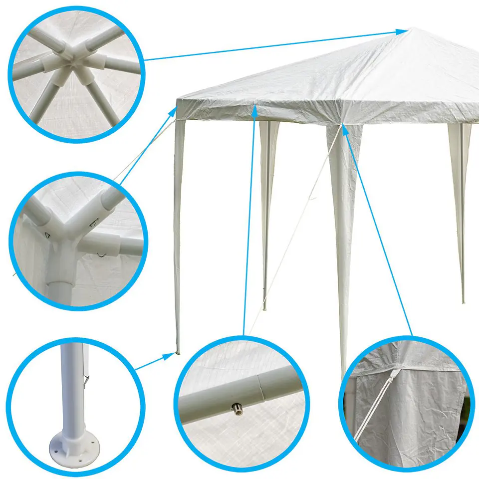 - wytrzymały, z solidną stalową konstrukcją idealny do ogrodu, na taras lub na działkęzapewnia ochronę przed słońcem, ciekawskimi spojrzeniami, deszczem, daje cieńwnętrze pawilonu można udekorować rozmaitymi dodatkami i wstawić zestaw wypoczynkowy lub cateringowyprzeźroczyste okna dodają elegancji i pozwalają rozświetlić wnętrzeszerokie wygodne wejście zamykane na zamek, rozsuwane na boki zabezpieczone praktycznym mocowaniem – sznurkiemskłada się z 6 oddzielnych ścianek, montowanych do stelaża za pomocą rzepów (3 po bokach i 4 u góry ścianki), co daje możliwość otwarcia lub zamknięcia dowolnego bokuduża torba zamykana na zamek z długim uchwytem dołączona do zestawu ułatwi transport i przechowywanie części pawilonu po rozłożeniudołączone do zestawu łatwe do wbijania śledzie w kształcie spirali pozwolą na szybki montażpłaskie, okrągłe i szerokie podstawki na stopki z otworami na śledzie chronią stelaż przed wbijaniem się w ziemię i utrzymają go stabilnie na podłożu