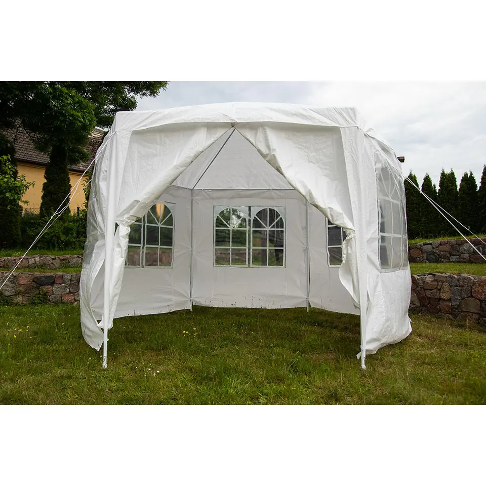Niedzielny obiad z rodziną, czy wieczór ze znajomymi w ogrodzie uprzyjemni Ci, sześciokątny pawilon Saska Garden. Aranżacja jego wnętrza zależy tylko od Twojej wyobraźni. Masz szerokie możliwości i sporo miejsca, by zamontować w nim oświetlenie, dekoracje, ustawić stoły i meble, niezbędne podczas rozmaitych spotkań. Namiot jest wygodny w użytkowaniu i łatwy w montażu.