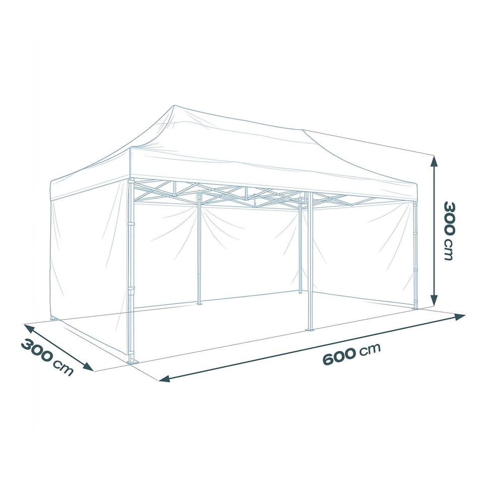 Namiot eventowy Plonos 300 × 600 mm to przestronne i funkcjonalne rozwiązanie dla bardziej wymagających zastosowań. Większa powierzchnia zapewnia komfort pracy, sprzedaży i wypoczynku nawet dla kilku osób jednocześnie.