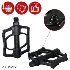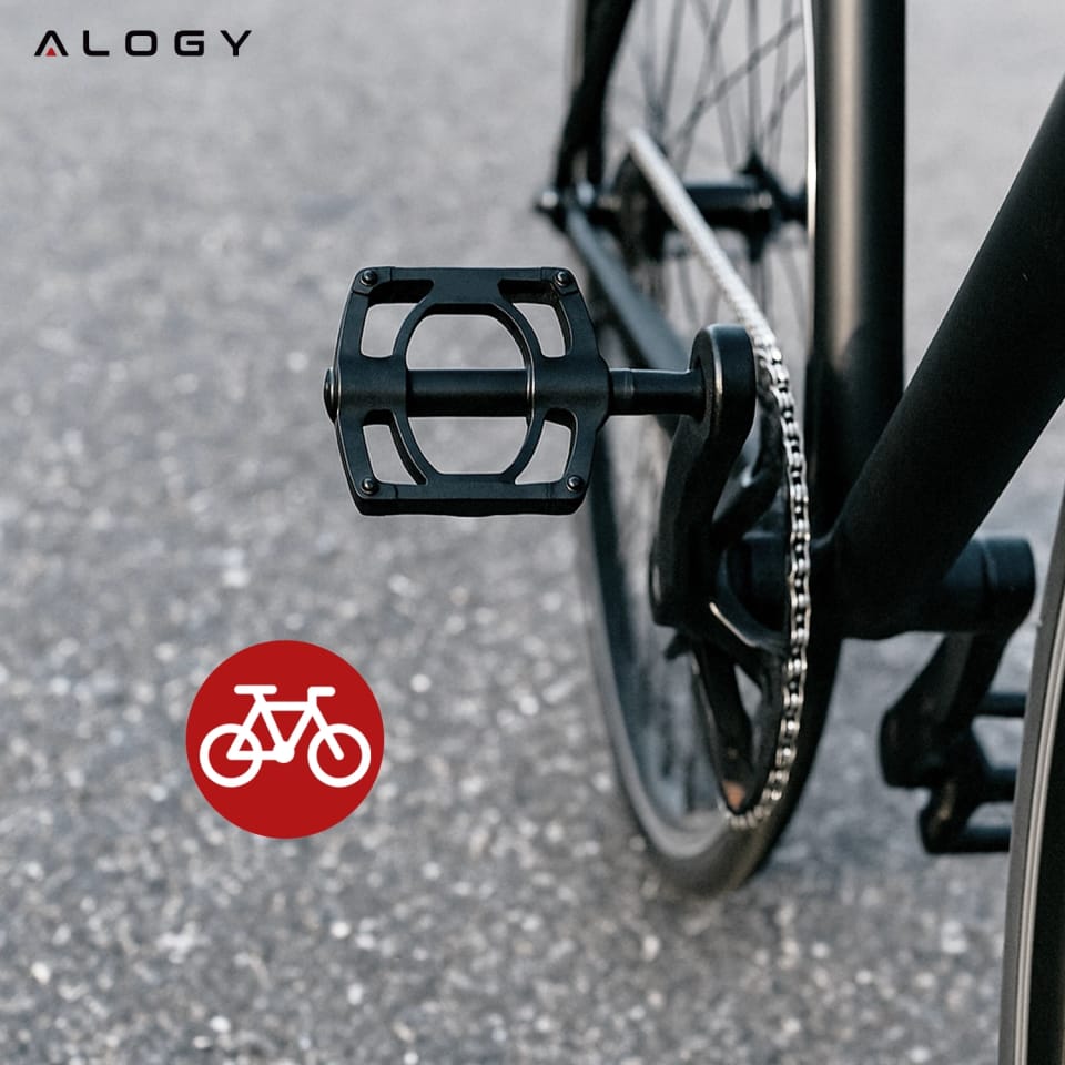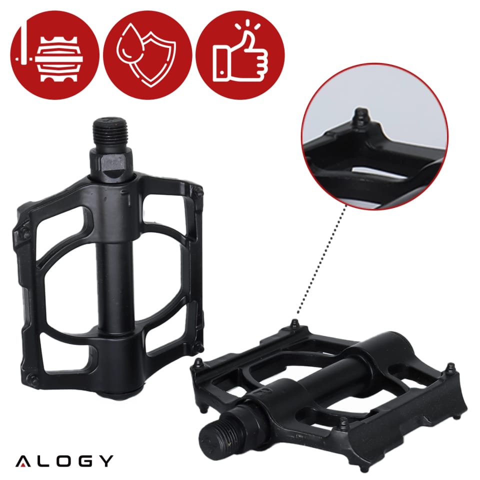 ✅ Pedały Alogy wyposażono w 8 stalowych pinów antypoślizgowych, które stabilnie trzymają podeszwę nawet na mokrej i śliskiej nawierzchni. Zyskujesz pewność każdego ruchu, większe bezpieczeństwo i pełną kontrolę nad rowerem – niezależnie od pogody.