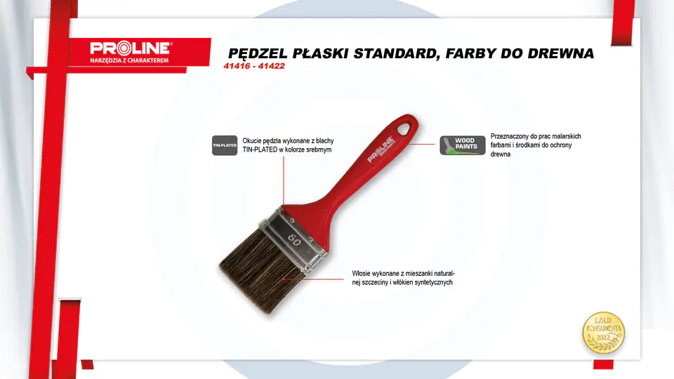Pędzel płaski standard 60mm,rączka plastik,do drew.,proline