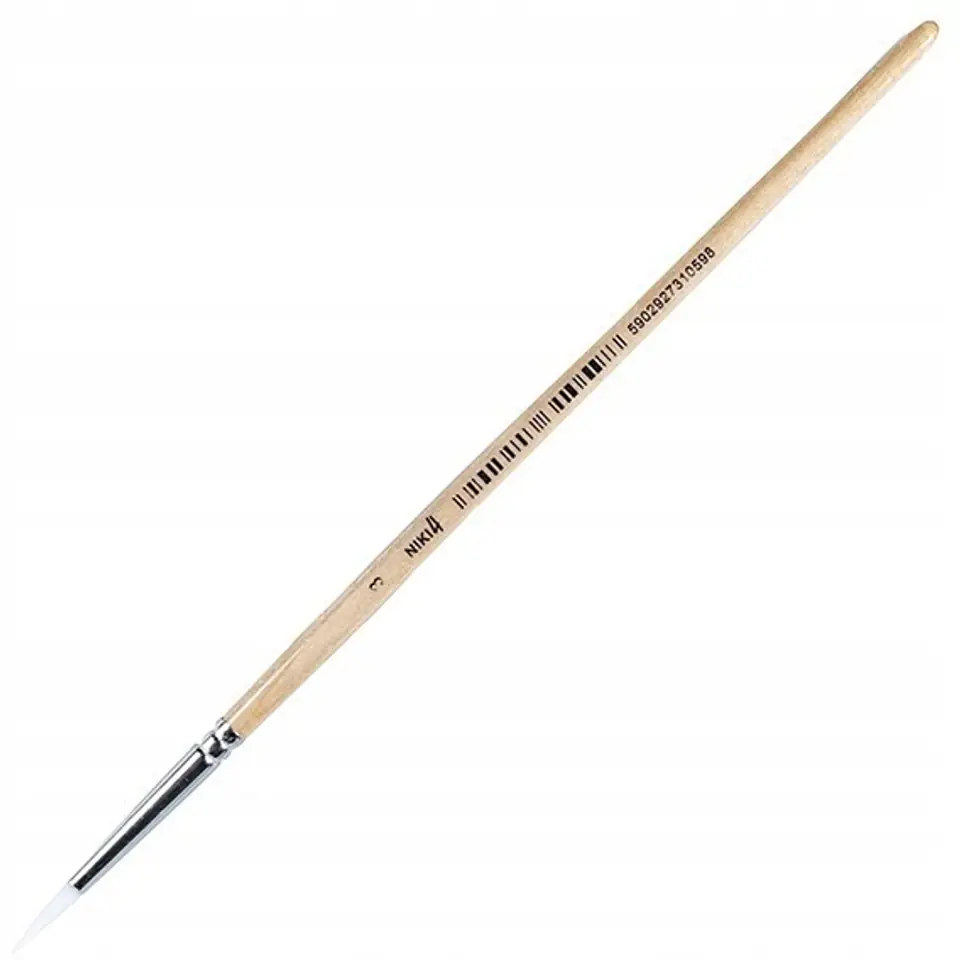 Pedzel okrągly przeznaczony jest do malowania: detali, wypelnien, cienkich i grubych linii. Wykonany jest z nylonu. Trzonek pedzla wykonany jest z lakierowanego drewna, wlosie umieszczone jest bezszwowo w metalowej skuwce.