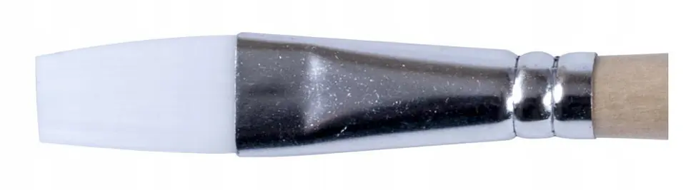 Pedzel plaski przeznaczony jest do malowania: pojedynczych pociągniec, cienkich i grubych linii. Wykonany jest z nylonu. Trzonek pedzla wykonany jest z lakierowanego drewna, wlosie umieszczone jest bezszwowo w metalowej skuwce.
