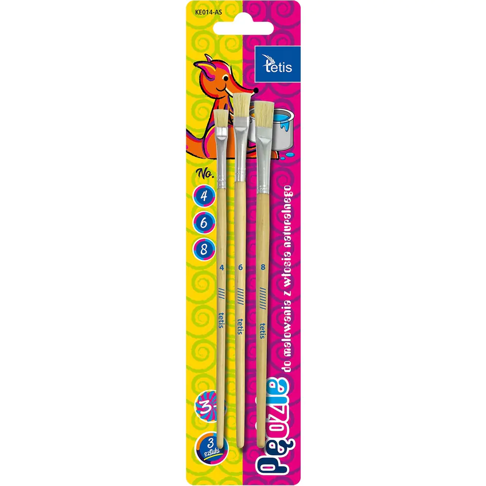 Pedzle do malowania z naturalnego, sztywnego wlosia. Plaski ksztalt. Rączka z drewna brzozowego.