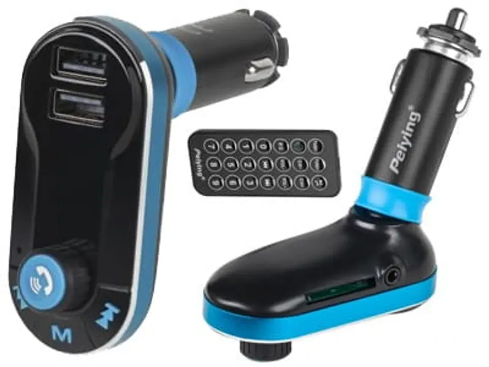 Peiying URZ0461 to samochodowy transmiter FM 1,4" z ładowarką USB (5V/2.1A)