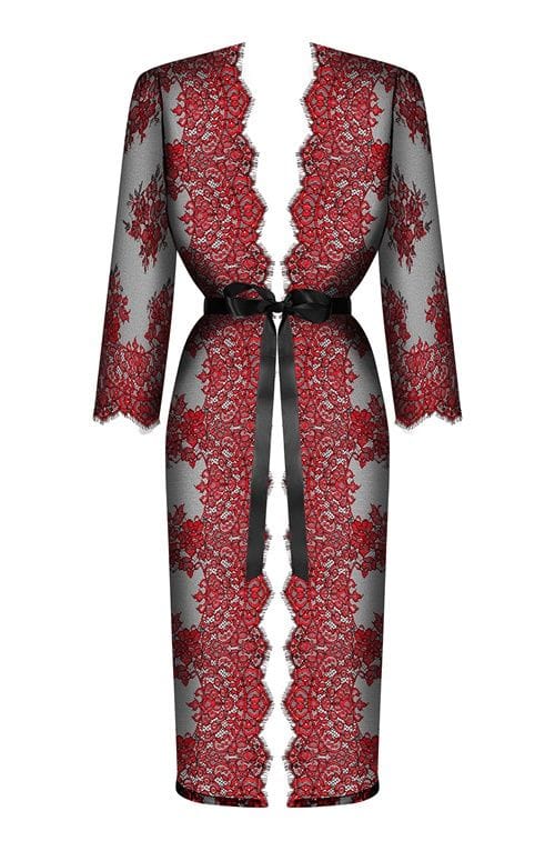 • Jedna z najpiękniejszych propozycji tego sezonu! Okryj swoje ciało zjawiskowym, półprześwitującym peniuarem w pięknej, ciemnoczerwonej koronce z efektem typu eyelash na brzegach. Talię podkreśli eleganckie, satynowe wiązanie, które z tyłu posiada kokardkę. Jeśli i Ty należysz do grona miłośniczek pięknej, niezwykle kobiecej koronki - ta bielizna jest dla Ciebie. Skład: 90% poliamid, 10% elastan.