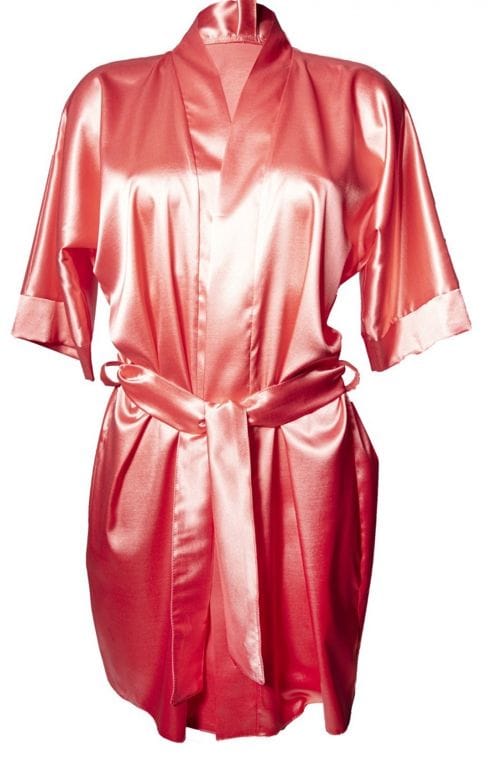 Ekskluzywny peniuar - szlafroczek, wiązany w talii. Gładki, elegancki, kobiecy. Rękawy typu kimono, do okolic łokci. Warto go mieć. Skład: 100% poliester.