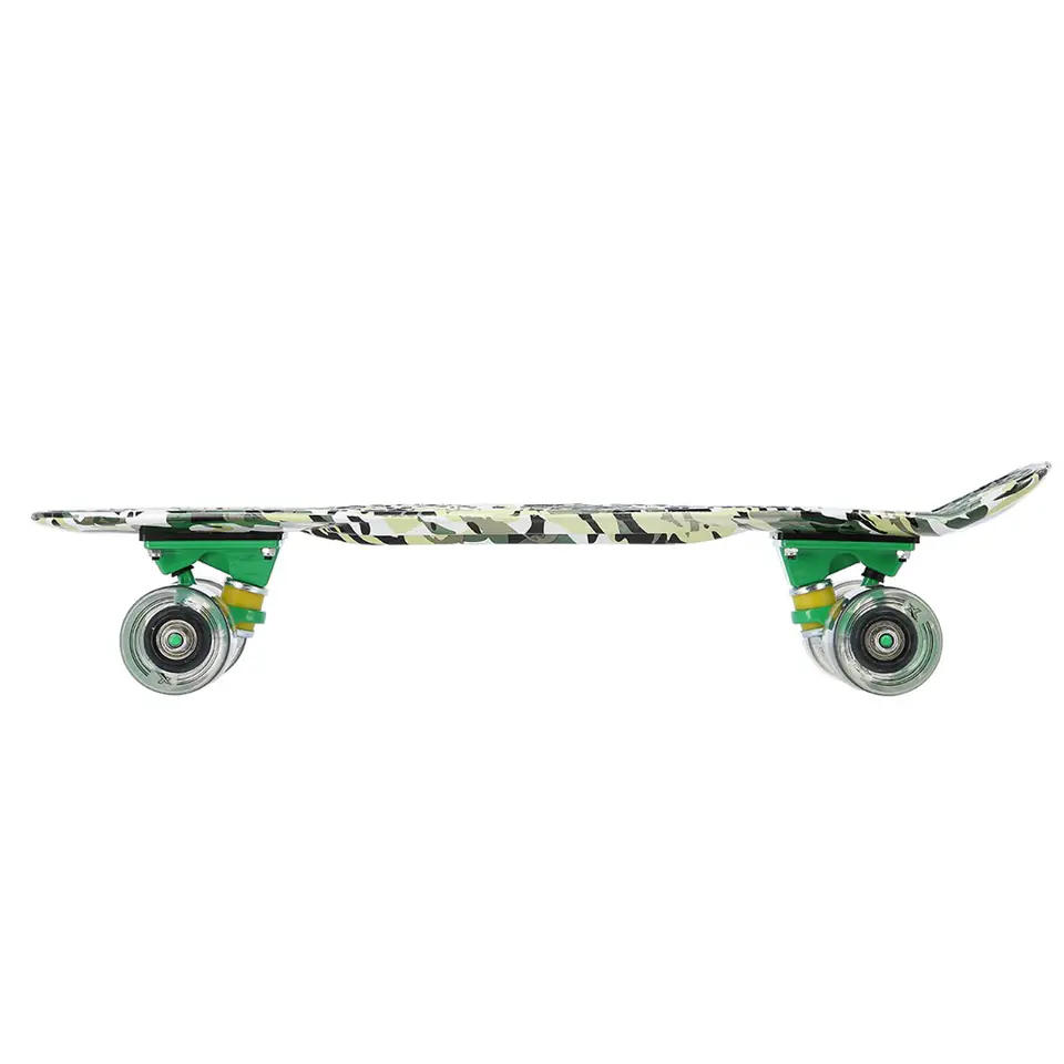 Pennyboard Art Moro Nils Extreme charakteryzuje się nowatorskim designem nawiązującym do motywów militarnych. Deskorolka została wykonana ze sztucznego tworzywa o nazwie polipropylen, w skrócie PP. Użycie tego rodzaju materiału przekłada się na dużą wytrzymałość deskorolki, większą niż w przypadku typowych deskorolek, wykonanych z drewnianej sklejki. Górna strona deskorolki ma formę kratownicy, która powoduje lepszą przyczepność. Małe rozmiary pozwalają bez problemu zmieścić ją nawet do niewielkiego plecaka. Deskorolka została wyposażona w poliuretanowe kółka, które charakteryzują się dużą wytrzymałością na ścieranie, a także idealnie tłumią drgania. Pennyboard dostosowano do użytku przez osoby w każdym wieku. Specyfikacja: Wymiary: 56x14 cm Materiał: tworzywo polipropylen (PP) Górna strona pokryta kratownicą wzmacniającą przyczepność Tylna strona deski wygięta Truck: 3,25" wzmocniony, polerowany, aluminiowy Łożyska: ABEC-7 Kółka: PU 60 x 45 mm, twardość 78 A Waga: 2,2 kg Waga użytkownika: max 100 kg Uwagi: Nie przeznaczony do użytku komercyjnego Gwarancja 24 miesiące Importer: Abisal Sp. z o.o.| Polska | 41-807 Zabrze | ul. Pyskowicka 17 | e-mail: abisal@abisal.plAbisal Sp. z o.o. deklaruje, iż produkty sprzedawane przez firmę są bezpieczne i spełniają wymagania zawarte w Ustawie o ogólnym bezpieczeństwie produktów z dnia 12 grudnia 2003r. (Dz.U. z dnia 31 grudnia 2003r.)