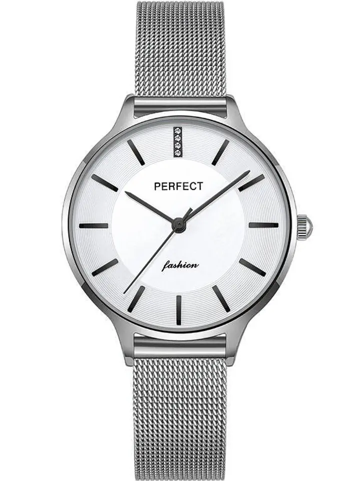Wykonana z wysokiej jakości stali, idealnie dopasowuje się do damskiego nadgarstka, zapewniając wygodę noszenia przez cały dzień. Jej elegancka struktura i zapięcie ozdobione logiem marki Perfect dodają zegarkowi wyjątkowego stylu i wyróżniają go na tle innych.