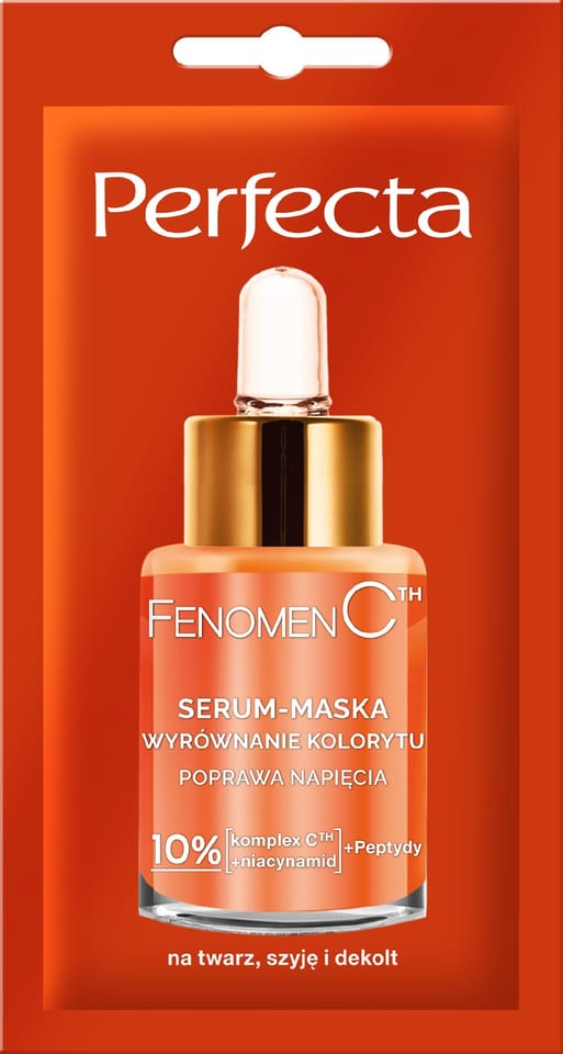 Podaruj swojej skórze intensywną dawkę energii, rozświetlenia i ujędrnienia z Perfecta Fenomen CTH. Formuła serum-maski zawiera aż 10% [kompleksu CTH i niacynamidu] zapewniając skuteczne wsparcie procesów regeneracji skóry. Regularnie stosowana ujednolica koloryt skóry i poprawia jej napięcie, pozostawiając ją jedwabiście gładką, rozświetloną i pełną blasku. Polecana szczególnie do skóry wymagającej redukcji przebarwień, uelastycznienia i ujędrnienia.