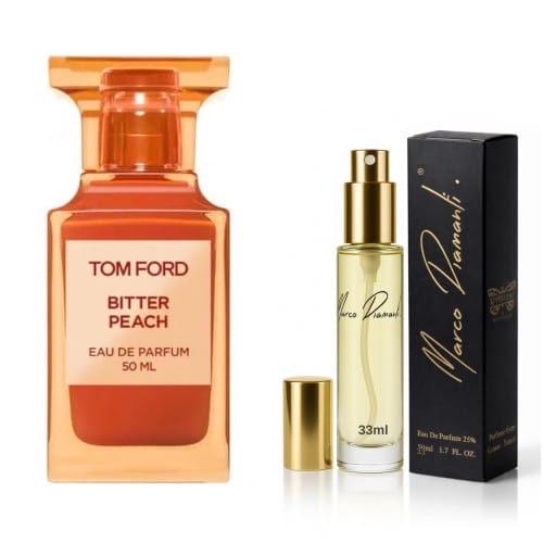 Perfumy nr 312 33ml - zamiennik inspirowany Bitter Peach od Tom FordZamiennik perfum inspirowany Bitter Peach od Tom FordZamiennik inspirowany Bitter Peach to elegancka kompozycja, która otula zmysły ciepłym, owocowym akcentem. W tej esencji zawarte są nuty, które przywołują na myśl letnie wieczory pełne słońca i beztroski. Ten zapach doskonale oddaje chwilę relaksu przy lampce wina, w otoczeniu bliskich. Wysoka jakość wykonania w przystępnej cenie sprawia, że jest to wybór, który z pewnością zadowoli miłośników wysublimowanych aromatów.Charakter zapachu i główne akordyGłówne akordy: drzewny, ciepłe przyprawy, wanilia, owocowy, bursztynowyTa kompozycja otwiera się eksplozją soczystej brzoskwini i krwistej pomarańczy, które wprowadzają w nastrój radosnej lekkości. Z każdą chwilą rozwija się niezwykle zmysłowa aura rumu i jaśminu, które współtworzą elegancki, aksamitny finisz o nutach wanilii i drzew sandałowych.Nuty zapachoweKompozycja zapachu opiera się na klasycznej piramidzie zapachowej, która rozwija się od świeżych nut głowy, przez zmysłowe serce, aż po głęboką bazę.Nuty zapachowe głowybrzoskwiniapomarańcza krwistakardamonheliotropNuty zapachowe sercarumkoniakdavanajaśminNuty zapachowe bazywanilialiść paczuli indonezyjskiegofasola tonkadrzewo sandałowebenzoescashmeranstyraxlabdanumwetiwerWybór tej kompozycji to doskonały sposób na odkrycie subtelnych niuansów zapachowych, które wzbogacą codzienność.Zapach inspirowany Tom Ford Bitter Peach, nie jest jednak jej produktem ani oryginałem. To niezależna kompozycja zapachowa oparta na wysokiej jakości półproduktach, mieszanych przez nas, w Polsce.Wybierz swój zapach - ListaPerfumy w Biznesie, jak i wszystkie inne zapachy dla kobiet spowodują, że poczujesz się magicznie i wyjątkowo, a zarazem dodadzą Ci otoczki tajemniczości i kobiecości. W ofercie zapachów damskich proponujemy zakup perfum o unikalnym, trwałym i wyjątkowym zapachu, ponieważ ich zaperfumowanie, to 24% olejków eterycznych.Perfum z Twoim firmowym logo w kulku wariantach:PRODUKT HANDLOWY - zarabiaj na sprzedaży perfum stworzonych z perfekcyjnie dobranych składników. Naklej logo swojej marki na butelce i kartoniku.PRODUKT MARKETINGOWY - rozszerz swój target marketingowy poprzez dodanie nowego rodzaju produktu. Zdobądź nowych klientów poprzez zmysł zapachu.UPOMINEK - dzięki zapachowi, Twoja marka będzie w stanie łączyć się z konsumentami na głębszym poziomie emocjonalnym.ZESTAW PROMOCYJNY - Pachnący dodatek do Twoich produktów zapewni klientowi pozytywne wrażenia na wielu zmysłowych poziomach.Wszystko ma swój indywidualny zapach. Teraz możemy go zmienić, stwarzając własną unikatową kompozycję, która odtąd będzie wizytówką, marką, bądź zapachem marketingowym, promocyjnym, upominkowym, a także każdym innym, który pomoże osiągnąć sukces.Zajmujemy się wszystkim od A do Z. Oznacza to w pełni kompleksową usługę. Życzymy wszystkim udanych wyborów i zadowolenia.