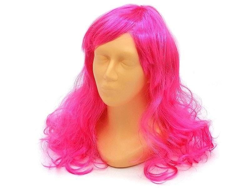 Peruka długa neonowy róż