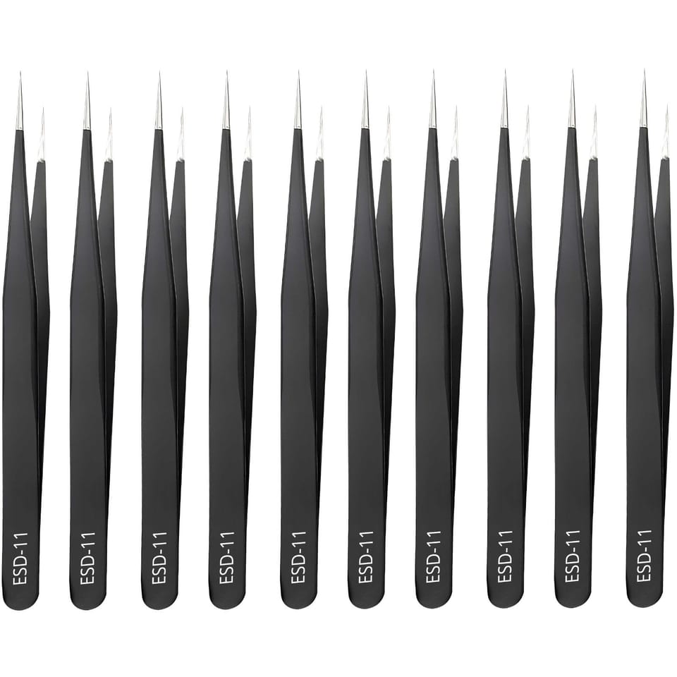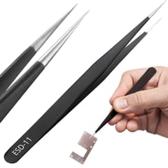 Kod produktu: 1030109Pęseta ESD-11 to niezbędne narzędzie dla każdego elektronika, zegarmistrza czy modelarza. Dzięki długości 14 cm oraz wykonaniu ze stali nierdzewnej i kwasoodpornej sprawdza się przy precyzyjnych pracach, takich jak lutowanie, montaż układów scalonych czy wymiana podzespołów elektronicznych. Antystatyczna i antymagnetyczna powłoka chroni delikatne elementy przed uszkodzeniem, a ergonomiczny kształt zapewnia wygodę użytkowania nawet podczas długiej pracy. Zestaw zawiera aż 10 sztuk pęset, co czyni go praktycznym i wszechstronnym wyborem zarówno do elektroniki, jak i innych precyzyjnych zastosowań.Cechy produktu: