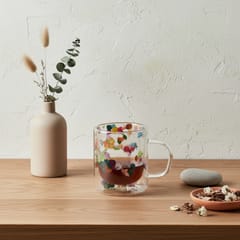 Odkryj piękno i wyjątkowość kubka PETER FLOWERS, wykonanego z najwyższej jakości szkła borokrzemowego. Ten dwuwarstwowy kubek nie tylko zachwyca swoją nowoczesną formą, ale również zapewnia doskonałą izolację termiczną, dzięki czemu napoje dłużej utrzymują swoją temperaturę.Jednak to, co wyróżnia kubek PETER FLOWERS, to subtelny, artystyczny detal . między ściankami kubka znajdują się starannie wyselekcjonowane, suszone kwiaty. Ten unikalny dodatek sprawia, że każdy łyk staje się nie tylko przyjemnością smakową, ale również estetycznym doznaniem. Kwiaty w środku kubka tworzą delikatny, naturalny wzór, który wprowadza do Twojego codziennego rytuału odrobinę natury i spokoju.Kubek PETER FLOWERS to idealny wybór dla tych, którzy cenią sobie styl, funkcjonalność oraz niebanalne rozwiązania w codziennym życiu. Doskonały na prezent lub jako wyjątkowy dodatek do własnej kolekcji. pojemność: 300ml wymiary: 8,5x12,5xh10cm waga: 148g / 190g z opakowaniem zapakowany jednostkowo w biały box: 12x12xh11cm