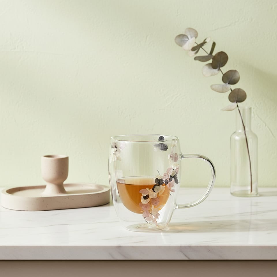 Odkryj piękno i wyjątkowość kubka PETER FLOWERS, wykonanego z najwyższej jakości szkła borokrzemowego. Ten dwuwarstwowy kubek nie tylko zachwyca swoją nowoczesną formą, ale również zapewnia doskonałą izolację termiczną, dzięki czemu napoje dłużej utrzymują swoją temperaturę.Jednak to, co wyróżnia kubek PETER FLOWERS, to subtelny, artystyczny detal . między ściankami kubka znajdują się starannie wyselekcjonowane, suszone kwiaty. Ten unikalny dodatek sprawia, że każdy łyk staje się nie tylko przyjemnością smakową, ale również estetycznym doznaniem. Kwiaty w środku kubka tworzą delikatny, naturalny wzór, który wprowadza do Twojego codziennego rytuału odrobinę natury i spokoju.Kubek PETER FLOWERS to idealny wybór dla tych, którzy cenią sobie styl, funkcjonalność oraz niebanalne rozwiązania w codziennym życiu. Doskonały na prezent lub jako wyjątkowy dodatek do własnej kolekcji.Wymiary:13x8xh12cmMYĆ W ZMYWARCE