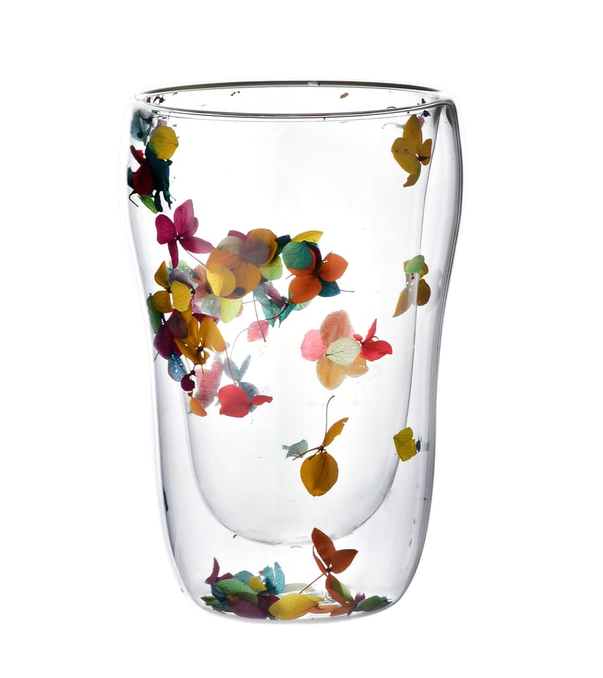Odkryj piękno i wyjątkowość kubka PETER FLOWERS, wykonanego z najwyższej jakości szkła borokrzemowego. Ten dwuwarstwowy kubek nie tylko zachwyca swoją nowoczesną formą, ale również zapewnia doskonałą izolację termiczną, dzięki czemu napoje dłużej utrzymują swoją temperaturę.Jednak to, co wyróżnia kubek PETER FLOWERS, to subtelny, artystyczny detal . między ściankami kubka znajdują się starannie wyselekcjonowane, suszone kwiaty. Ten unikalny dodatek sprawia, że każdy łyk staje się nie tylko przyjemnością smakową, ale również estetycznym doznaniem. Kwiaty w środku kubka tworzą delikatny, naturalny wzór, który wprowadza do Twojego codziennego rytuału odrobinę natury i spokoju.Kubek PETER FLOWERS to idealny wybór dla tych, którzy cenią sobie styl, funkcjonalność oraz niebanalne rozwiązania w codziennym życiu. Doskonały na prezent lub jako wyjątkowy dodatek do własnej kolekcji.Wymiary:9xh15cm