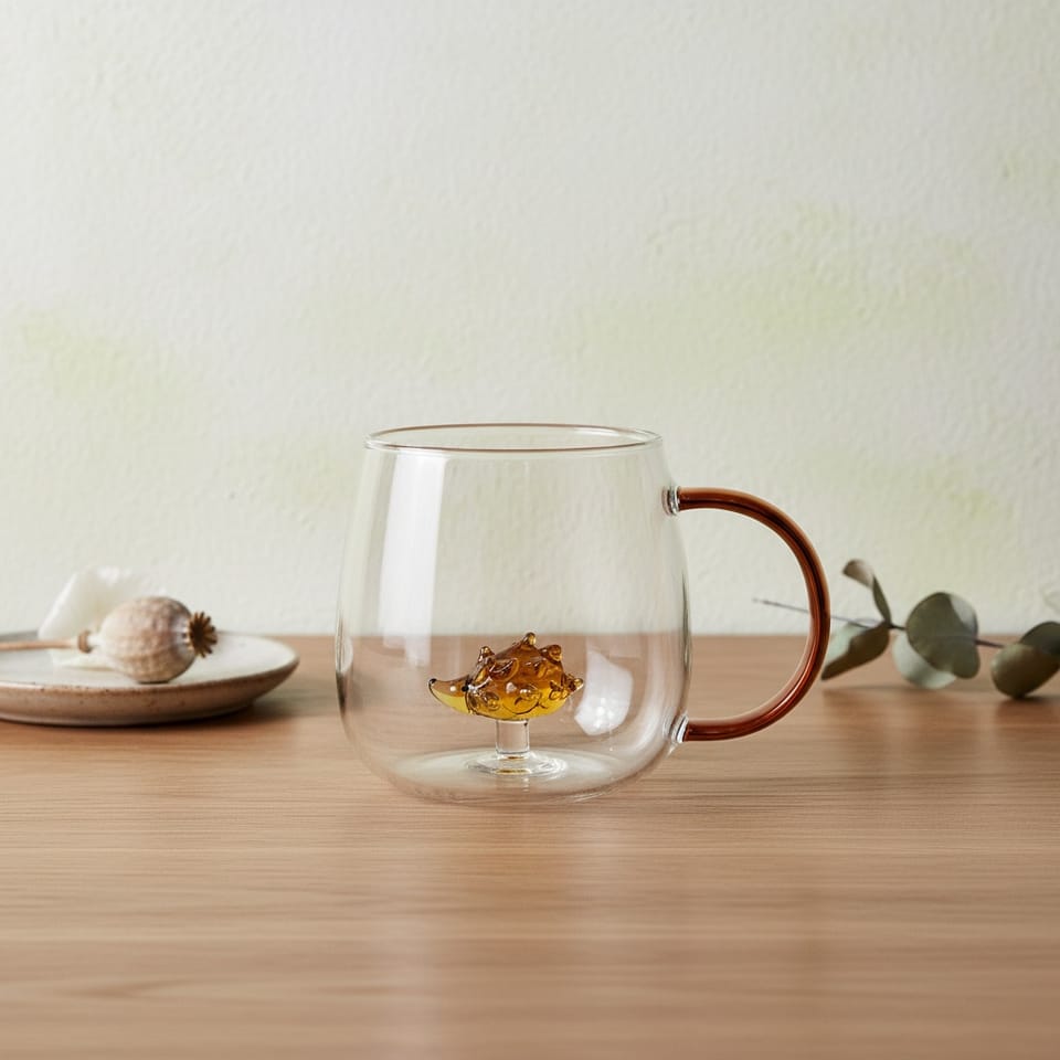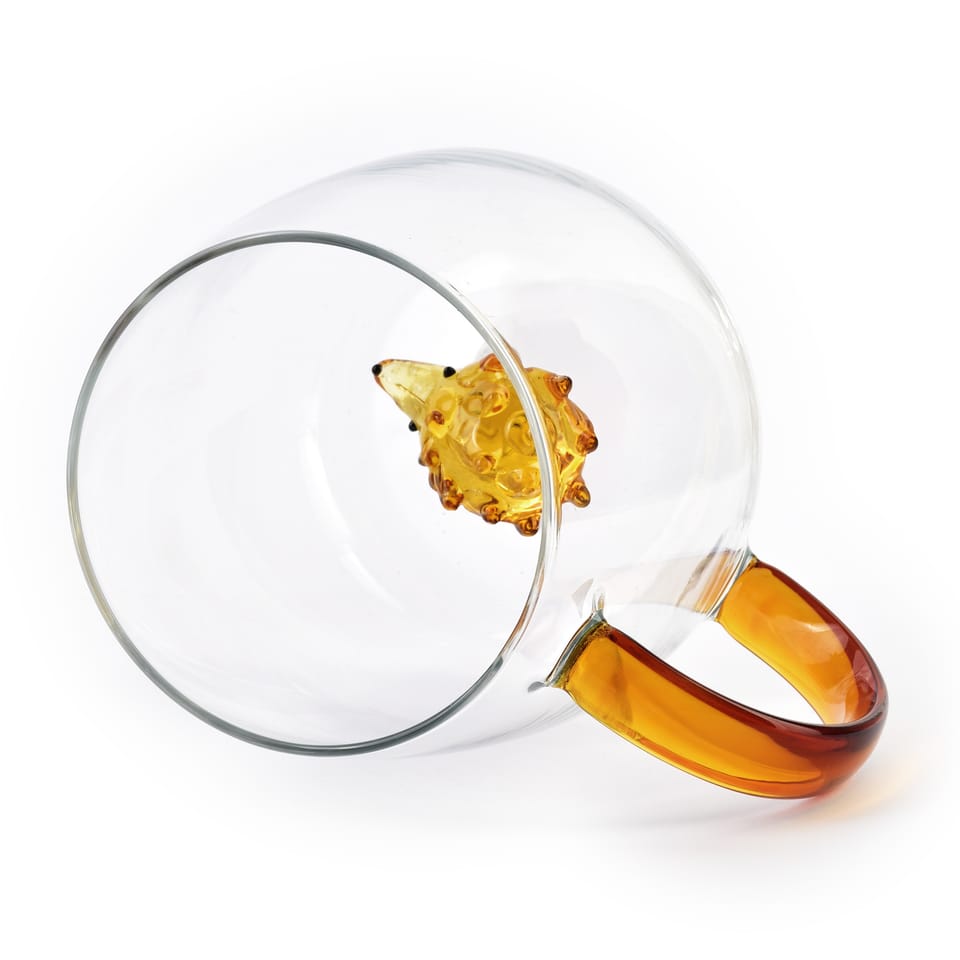 Kubek Peter Hedgehog. Szklany kubek z ukrytym jeżem. Czasami najmniejsze detale potrafią przynieść największą radość. Kubek Hedgehog jest tego najlepszym przykładem. Wyjątkowy kubek wykonany z delikatnego, lecz wytrzymałego szkła borokrzemowego, który skrywa w sobie niespodziankę. Kiedy powoli nalewasz gorącą herbatę czy aromatyczną kawę, w jego wnętrzu zaczyna wyłaniać się mały, uroczy jeż jakby właśnie wychodził z leśnego poszycia, ciekawsko spoglądając na świat. To nie tylko naczynie, ale mała scena, która ożywa z każdym łykiem. Szkło borokrzemowe, znane ze swojej wyjątkowej trwałości i odporności na wysokie temperatury, doskonale zachowuje czystość i przezroczystość, podkreślając piękno ukrytej w nim figurki. Jest lekkie, a jednocześnie solidne, stworzone z myślą o codziennym użytkowaniu. Wnętrze kubka zdobi precyzyjnie wykonana figurka jeża, który wydaje się pływać w napoju jak mały, leśny mieszkaniec odkrywający nowe światy. To drobny, lecz wyrazisty detal, który sprawia, że każda chwila spędzona z kubkiem staje się bardziej wyjątkowa. Połączenie estetyki, funkcjonalności i delikatnego humoru czyni Kubek Hedgehog idealnym pomysłem na prezent.