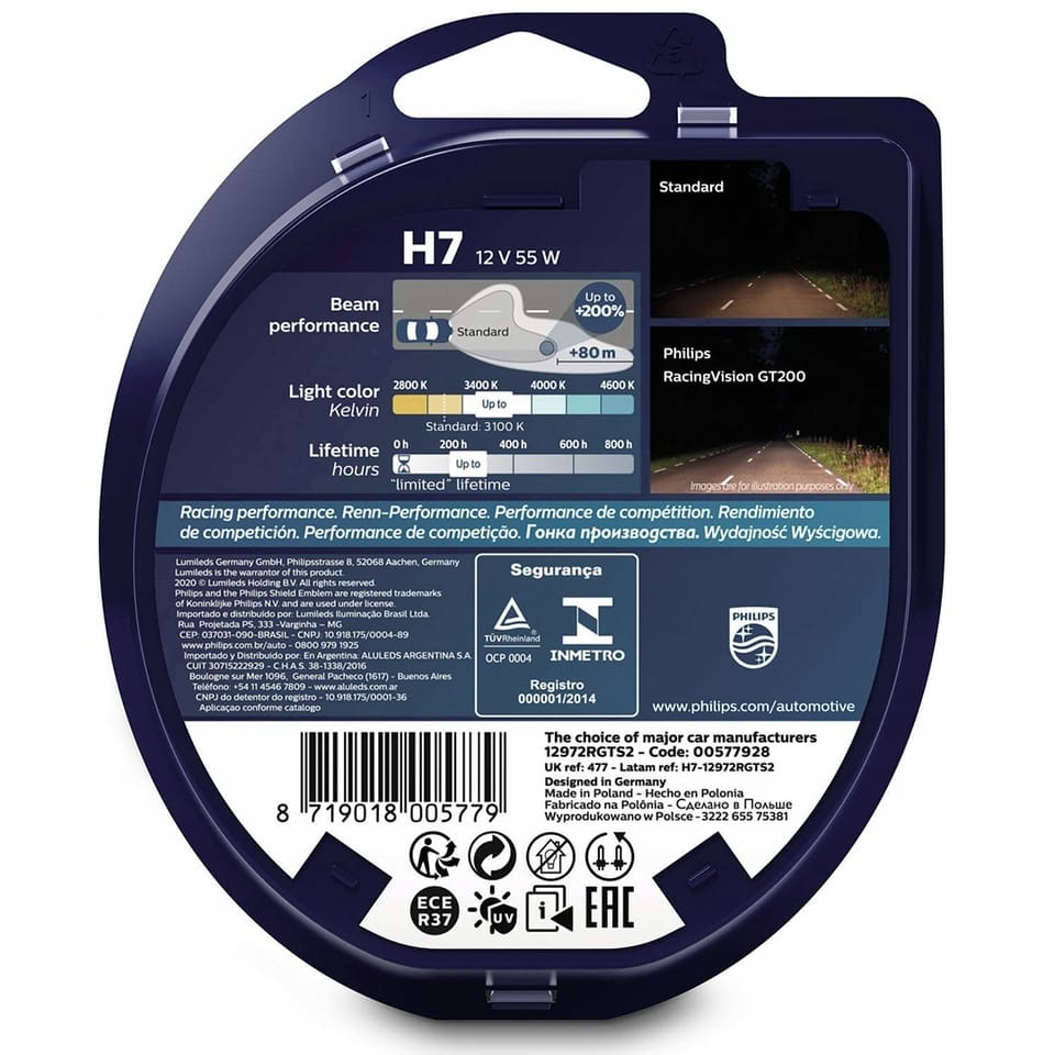 PHILIPS RACINGVISION GT200 H7 12 V 55 W, 2 SZT