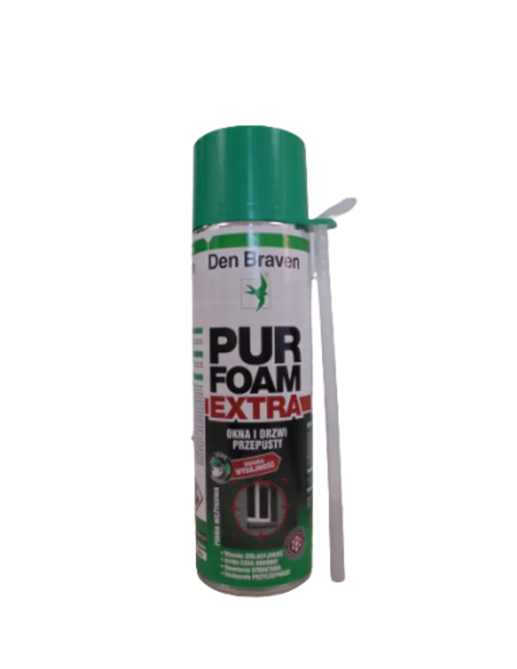 Den Braven Pur Foam Extra to jednoskładnikowa, poliuretanowa piana wężykowa, do zastosowań montażowych, izolacyjnych i uszczelniających.