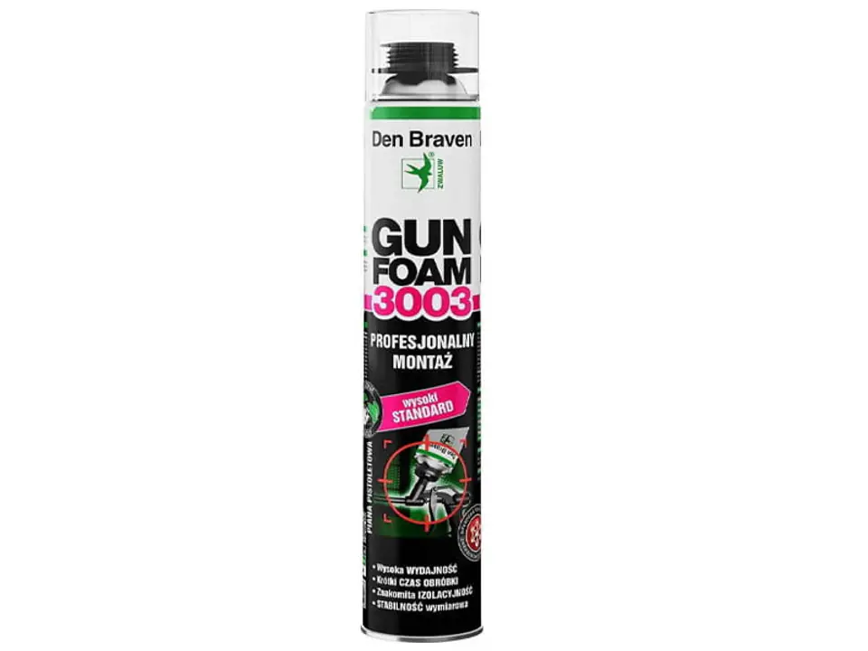 Den Braven Gun Foam 3003 to jednoskładnikowa, poliuretanowa piana pistoletowa, do profesjonalnego montażu okien i drzwi.
