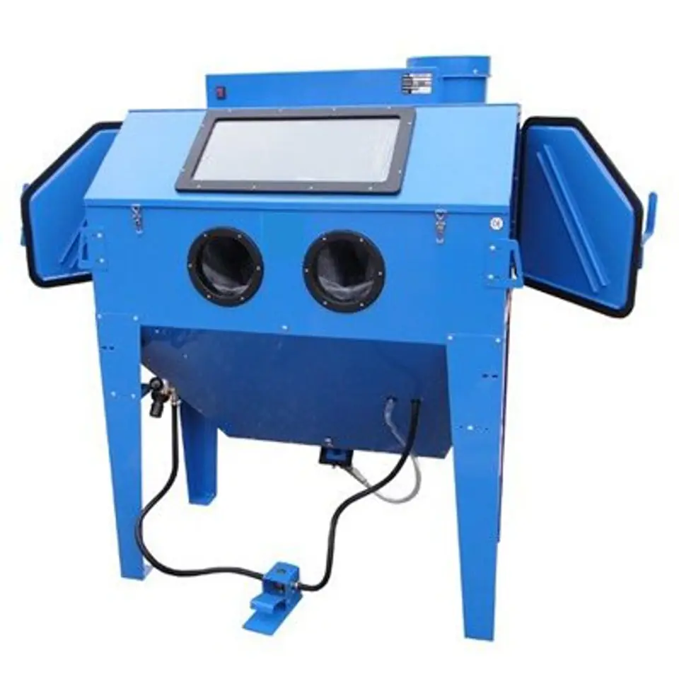 - wymiary ogólne: 130 x 90 x 170 cm- obszar roboczy: 120 x 60 x 58 cm- zużycie powietrza: 290 l/m- zakres ciśnienia: 3,5 - 8,6 bar (50 - 125psi)- maksymalne ciśnienie robocze: 8,6 bar (125 psi)- przybliżona ładowność ścierniwa: 20 kg