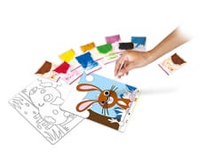 Artystyczna zabawa malowania piaskiem polegająca na odsłanianiu kolejno poszczególnych, naciętych elementów obrazka, tak by odkryć klejącą powierzchnię. Odsłonięte elementy posypuje się piaskiem w kolorze zgodnym ze wzorem tworząc piękną ilustrację. Jak wykonać obrazek?1. Przygotuj stanowisko pracy. Rozłóż na stole podkład ochronny załączony w opakowaniu.2. Za pomocą patyczka podważ wybrany element maskujący obrazka.3. Odklej podważony element tak, żeby odsłonić klejącą powierzchnię.4. Posyp piaskiem w odpowiednim kolorze odsłonięty, lepki fragment obrazka. Zalecamy rozpocząć pracę od ciemniejszych kolorów. 5. W celu równomiernego pokrycia klejącej powierzchni, rozsmaruj piasek palcami.6. Nadmiar piasku strząśnij ostrożnie na podkład.7. Strząśnięty piasek przesyp z powrotem do woreczka.8. Powtórz wybrane czynności z kolejnymi fragmentami obrazka, aż do uzupełnienia piaskami wszystkich lepkich płaszczyzn.Jak Piaskowe Malowanki stymulują rozwój dziecka?• Nawet dziecko niemające zdolności artystycznych nabiera wiary w swoje możliwości (każdemu udaje się stworzyć coś pięknego). • W trakcie zabawy dziecko doskonali swoje zdolności manualne, w tym głównie precyzję ruchów, a także zręczność i koordynację wzrokowo-ruchową. • Zabawa z Piaskowymi Malowankami pozytywnie wpływa na prawidłowy rozwój integracji sensorycznej. Co za tym idzie ma niebagatelny wpływ na powstawanie nowych połączeń między neuronami.• Rozwija kreatywności i wyobraźnię dziecka.• Ćwiczy koncentrację.• Działa relaksująco.obrazki do kolorowania – 2 szt., patyczek, woreczki kolorowego piasku – 10 szt., instrukcja.